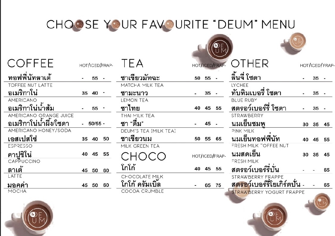 DEUM Cafe ดื่มคาเฟ่ สุโขทัย Menu